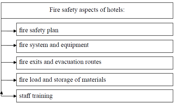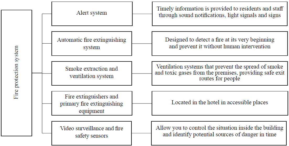 Since ensuring the safety of guests, staff and hotel property is a key aspect of quality service, it is extremely important to organize fire safety in the hotel, taking into account the aspects presented in Fig. 6.