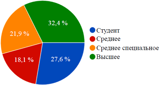 Среди респондентов преобладали люди с высшим образованием и студенты (рис. 3).