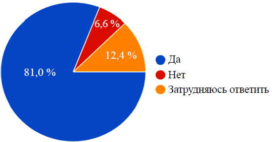 Рис. 6. Соотношение опрошенных респондентов, ответивших на вопрос о допустимости присутствия произведений стрит-арта в городе