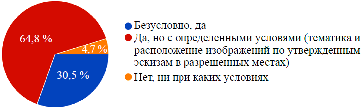Большинство респондентов считают допустимым присутствие произведений стрит-арта в городе (рис. 6).
