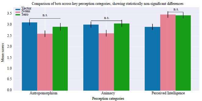 Fig. 1. Visualization of mean scores for AI bot perception characteristics with confidence intervals